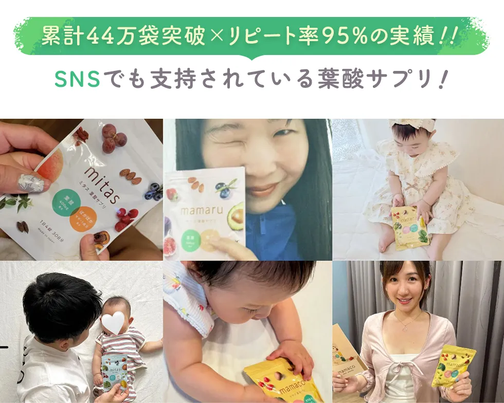 妊活中:mitas葉酸サプリ 妊娠中:mamaru葉酸サプリ |